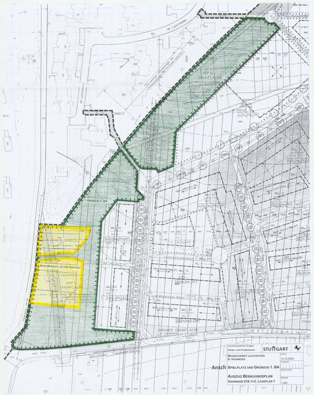 Neubaugebiet Lauchäcker, Grünanlage "Grünzug 1. Bauabschnitt" und Spielplatz "Spielen in den Gärten"