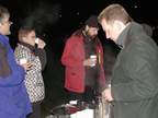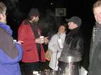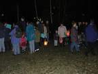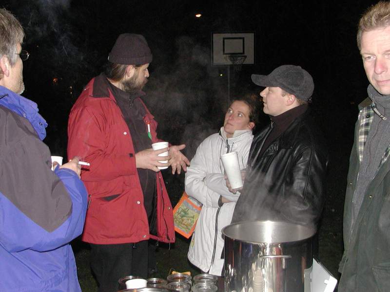 Nachdem alle eingetroffen waren und die Liedertexte verteilt waren, ... ... machten wir uns auf den Weg in den Lacuhhau.  Unter einer Laterne machten wir den ersten Halt und sangen ein paar Lieder..