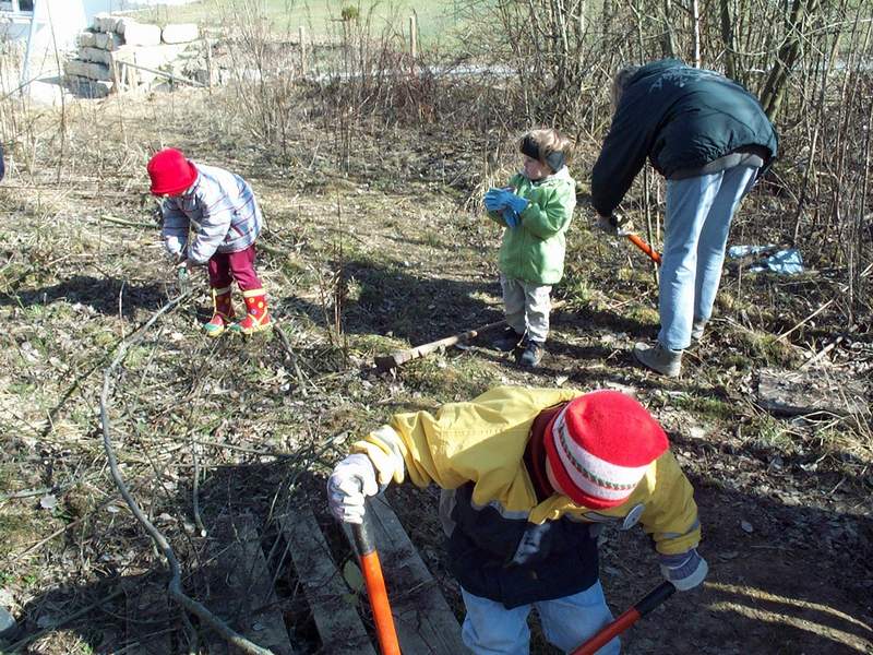 Kletterpalisade aufgebaut, eine Wippe gebastelt und einen