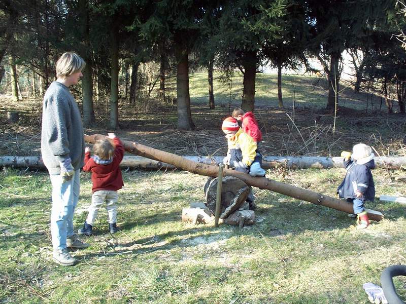 der ersten Tipis und die selbst gebaute Wippe. Diese gibt