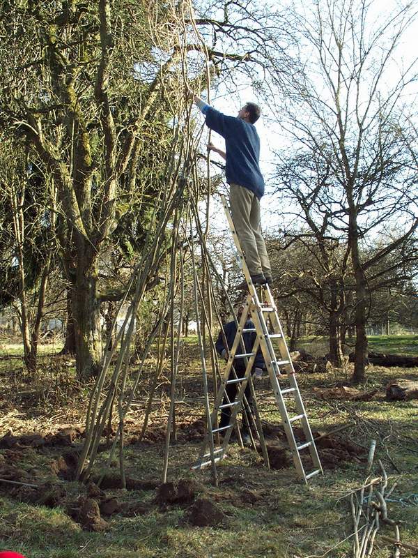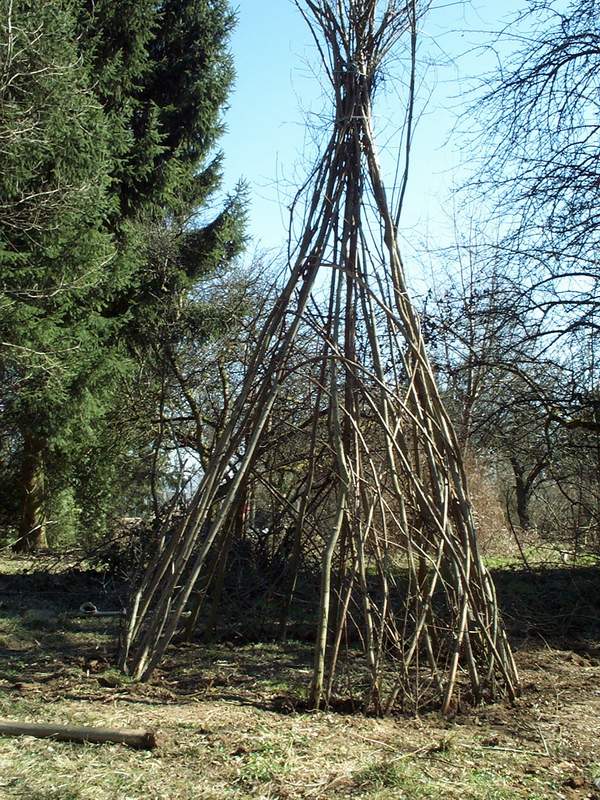 vorigen Bild ist das dritte Weidentipi im Entstehen.