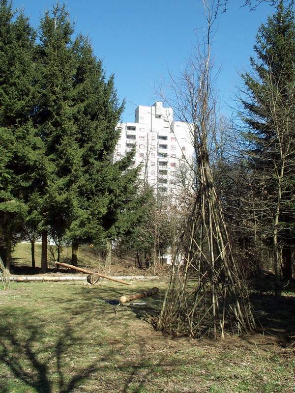 dritte Tipi vor der Kulisse der neuzeitlichen "Lauchhau-Tipis". |