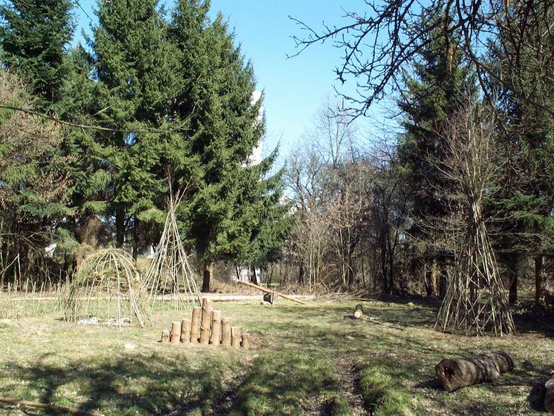 bestehenden Tipis herum ein drittes Weidentipi errichtet, eine