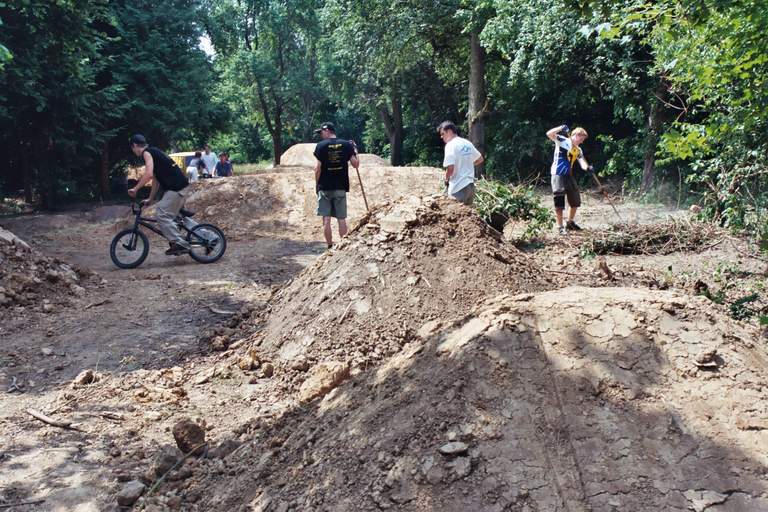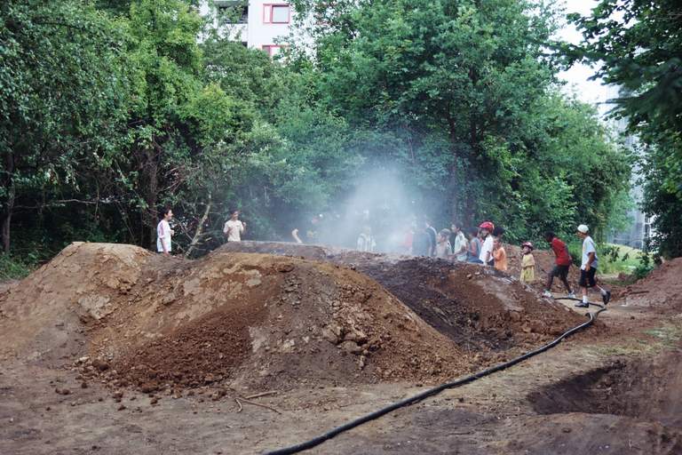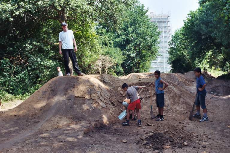 Geländemodellierung der Fahrradbahn mit viel Aushub aus den