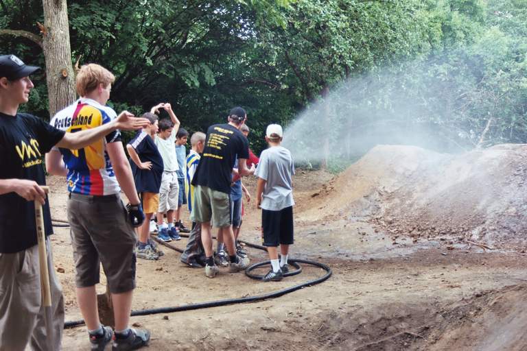 und Jugendliche durften gemeinsam den staubtrockenen Boden