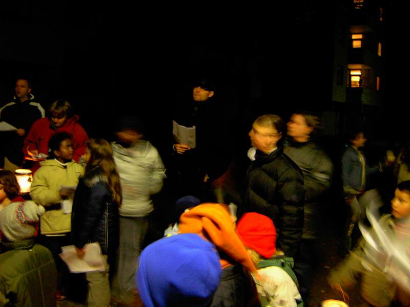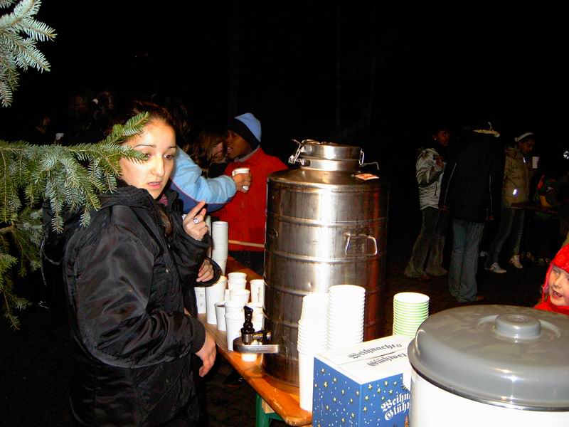 Der Kreis aus Kerzen vor dem Pavillon, der warme Kinderpunsch und der heiße Glühwein wurde, während wir unterwegs waren, von Frau Paparone und ihren Jugendlichen aus dem Jugendtreff Lauchhau vorbereitet. Das war toll und wir bedanken uns ganz herzlich für diese Unterstützung!