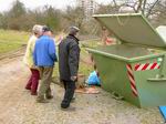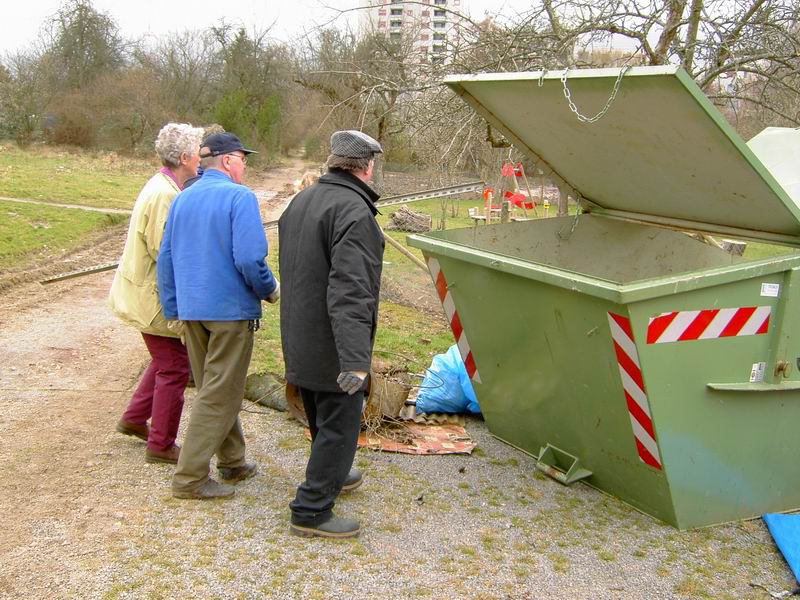 Das Garten- und Friedhofsamt hatte uns eine 10 qm Mulde für den Müll hingestellt.. Die haben wir dann auch voll bekommen. Sogar Hometrainer lagen da in den Büschen rum.