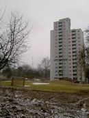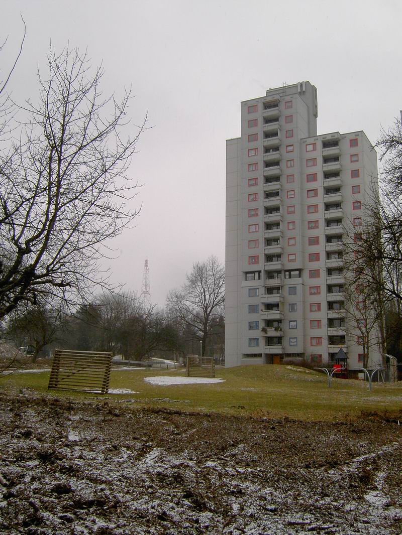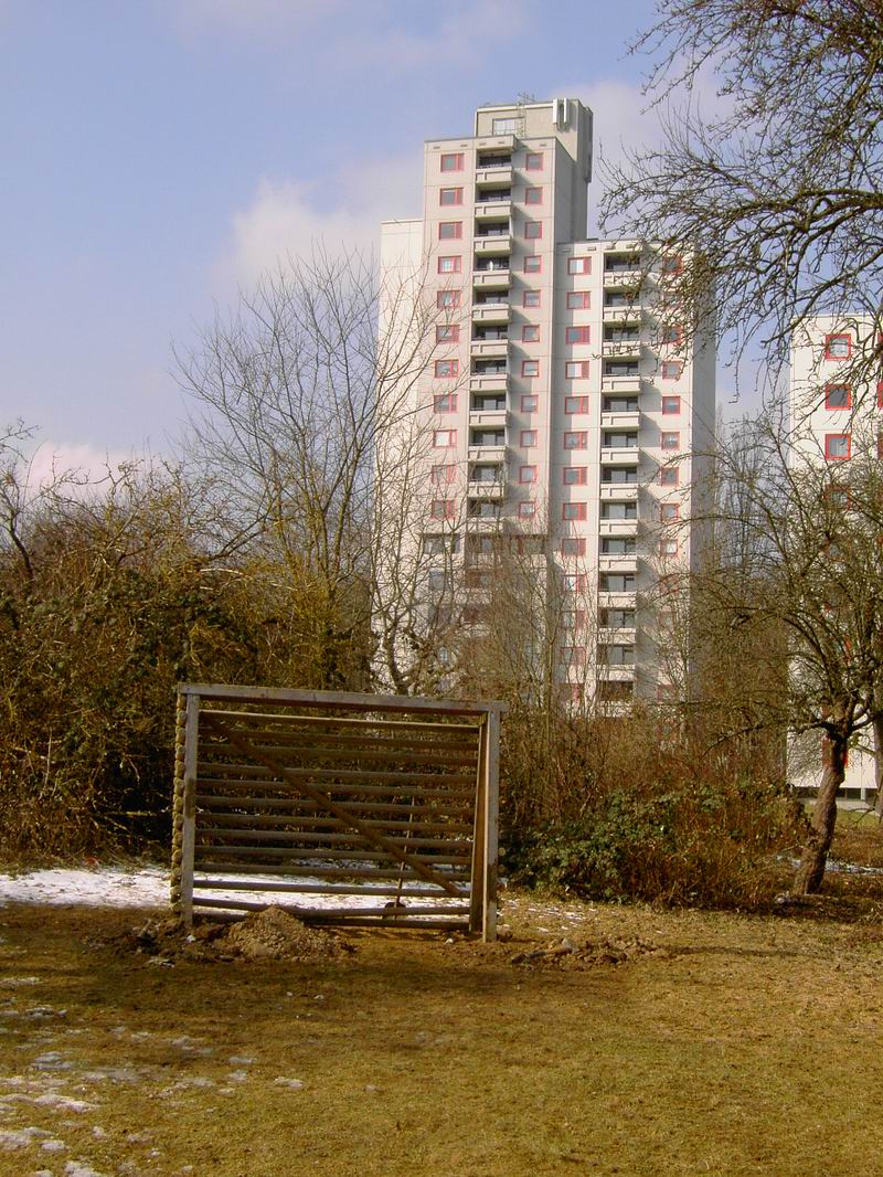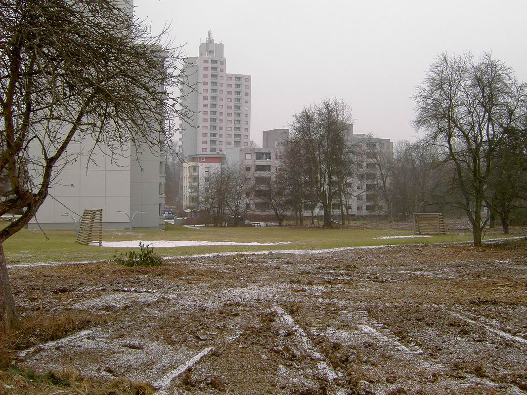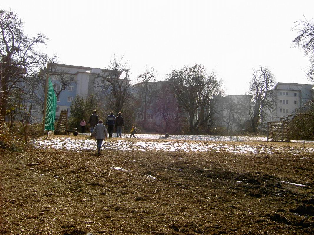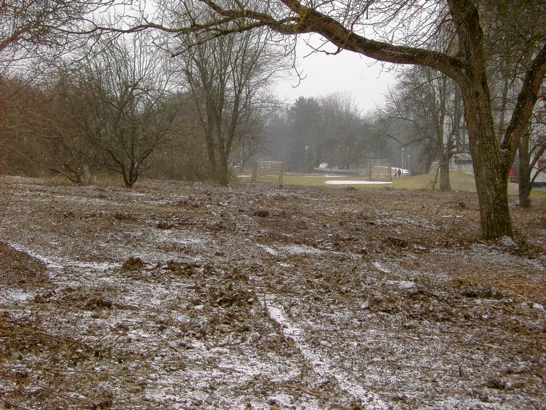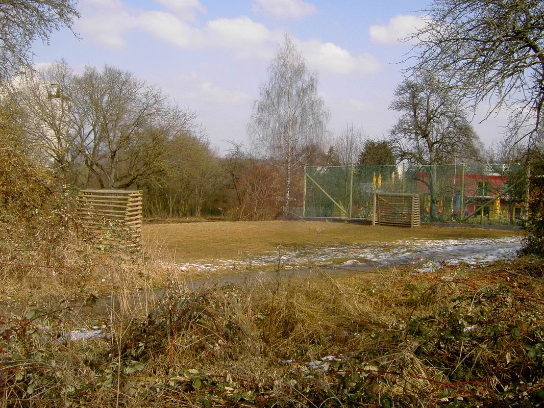 Am 26.02.2006 hab ich nochmals Bilder vom alten Bolzplatz gemacht. Hier kann man gut sehen, dass das Garten- und Friedhofsamt bereits ... ... mit der Anlage des Grünzuges zwischen Lauchhau und Lauchäcker begonnen hat. Büsche und Sträucher sind gerodet. In dieser Flucht etwa wird der Wasserlauf und der Weg durch den Grünzug verlaufen, mitten durch den alten Bolzplatz.
