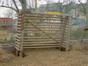 Den gefrorenen Boden stört das aber nicht. Der bleibt wie er ist - gefroren und "bogglhart". Aber wir haben's geschafft. Es steht gerade, zumindest so einigermaßen.  Auch das andere Tor muss noch mal raus. Jetzt werden auch gleich zwei geknickte Latten...
