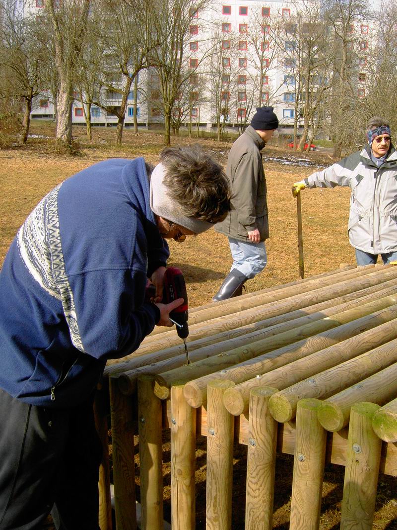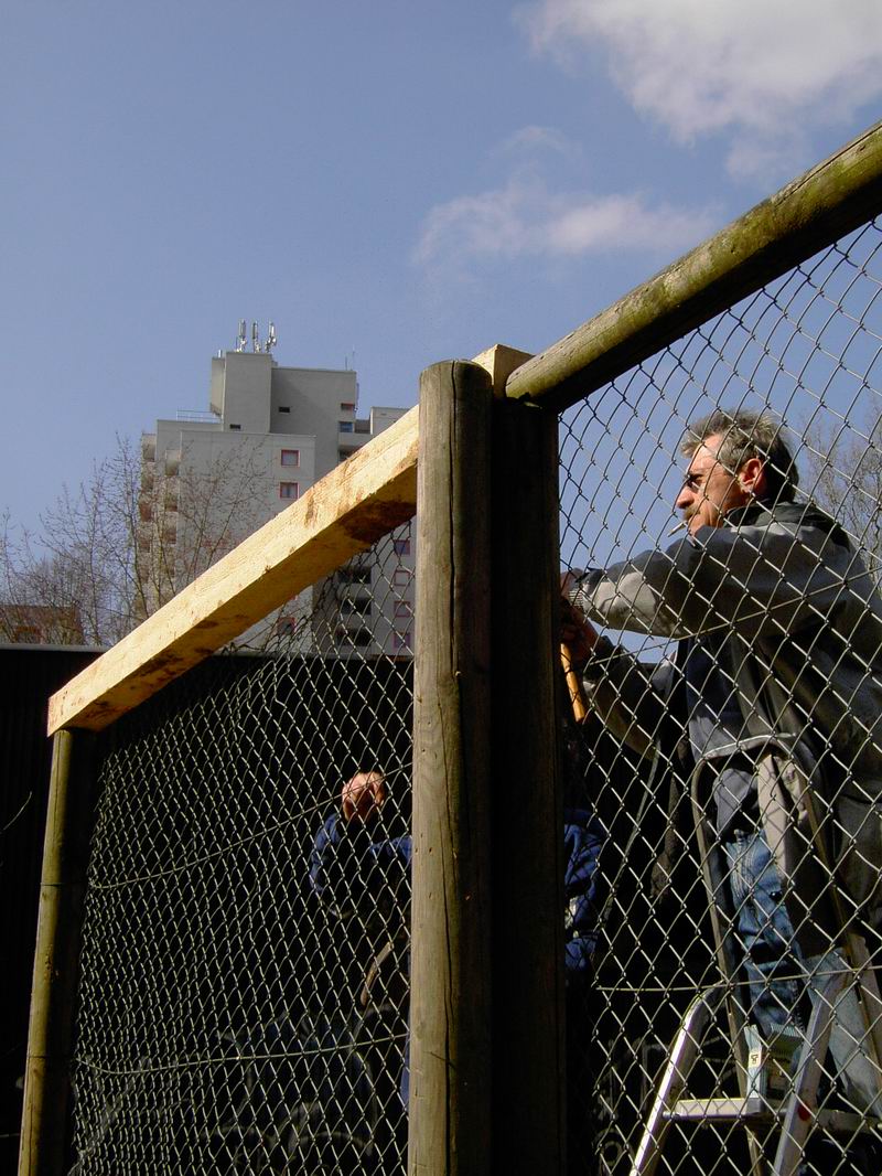 Am Pavillon haben wir dann auch gleich noch ...  ... einen morschen Balken am alten Ballfangzaun ... ... ersetzt. Das hält auch wieder ein paar Jahre.