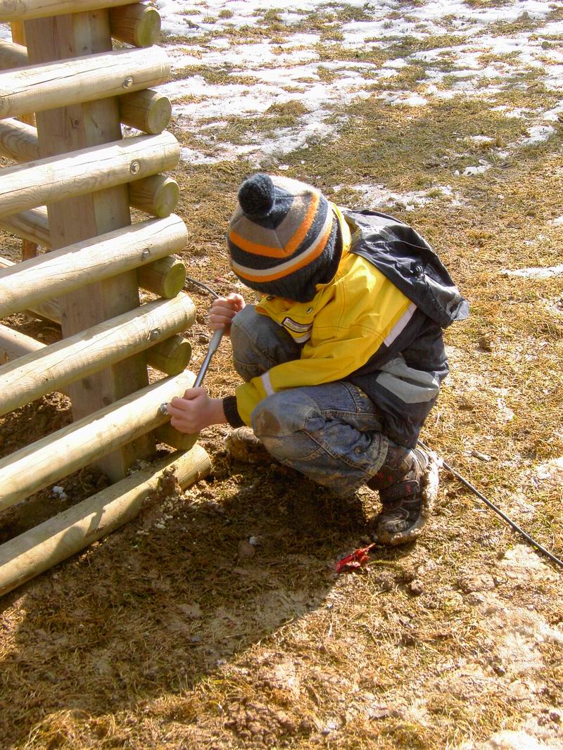 ...  erneuert. Löcher bohren und Schrauben ansetzen machen wir. Die Schrauben dreht Lars rein. Oh oh, schon wieder "Kinderarbeit" in Lauchhau-Lauchäcker!   Aber der Lars lässt sich nicht davon abhalten und macht das sowieso besser als wir "Alten".
