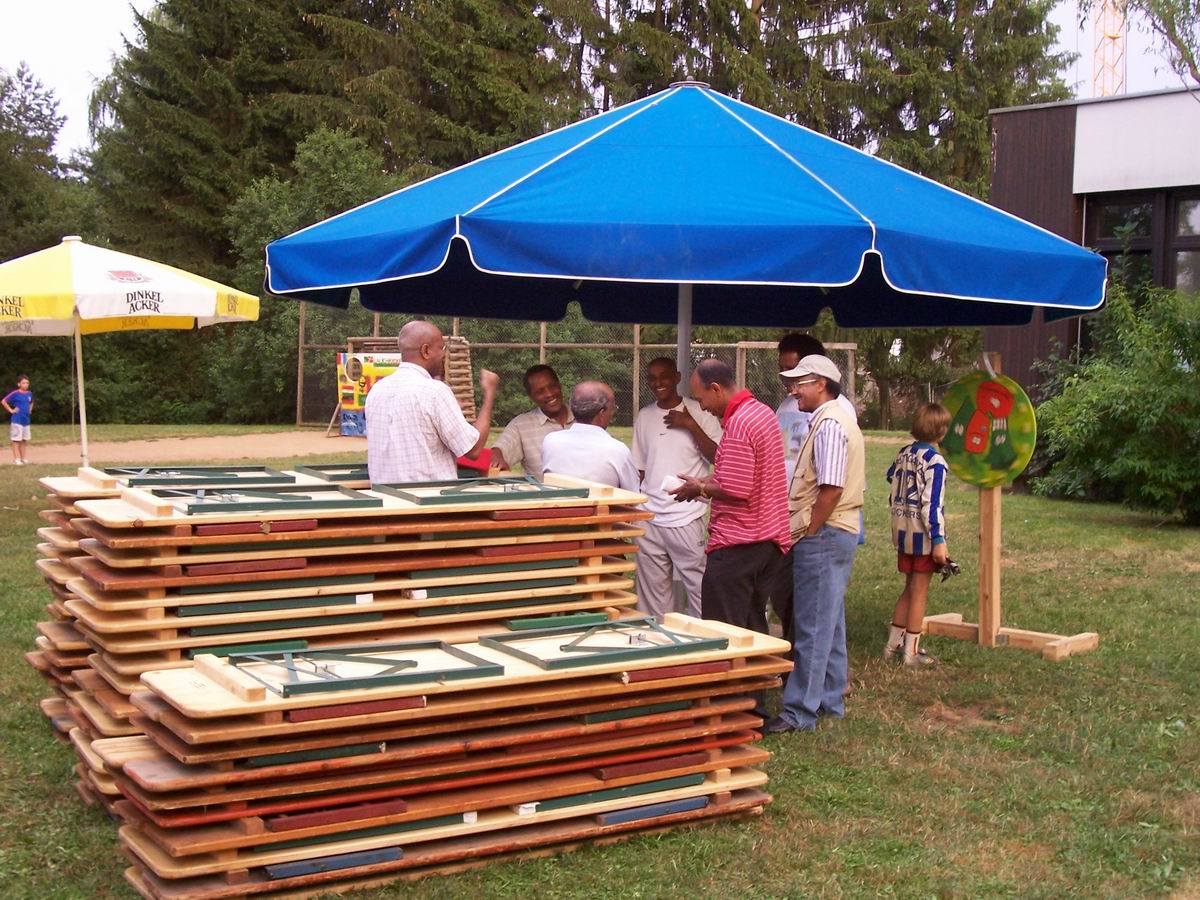 meisten Biertischgarnituren sind schon zusammen geklappt. |