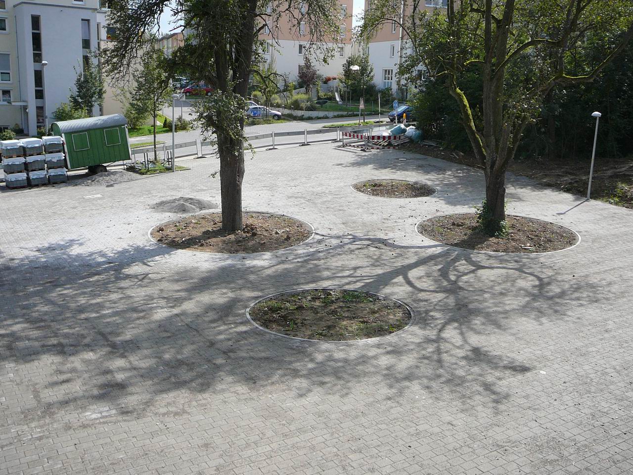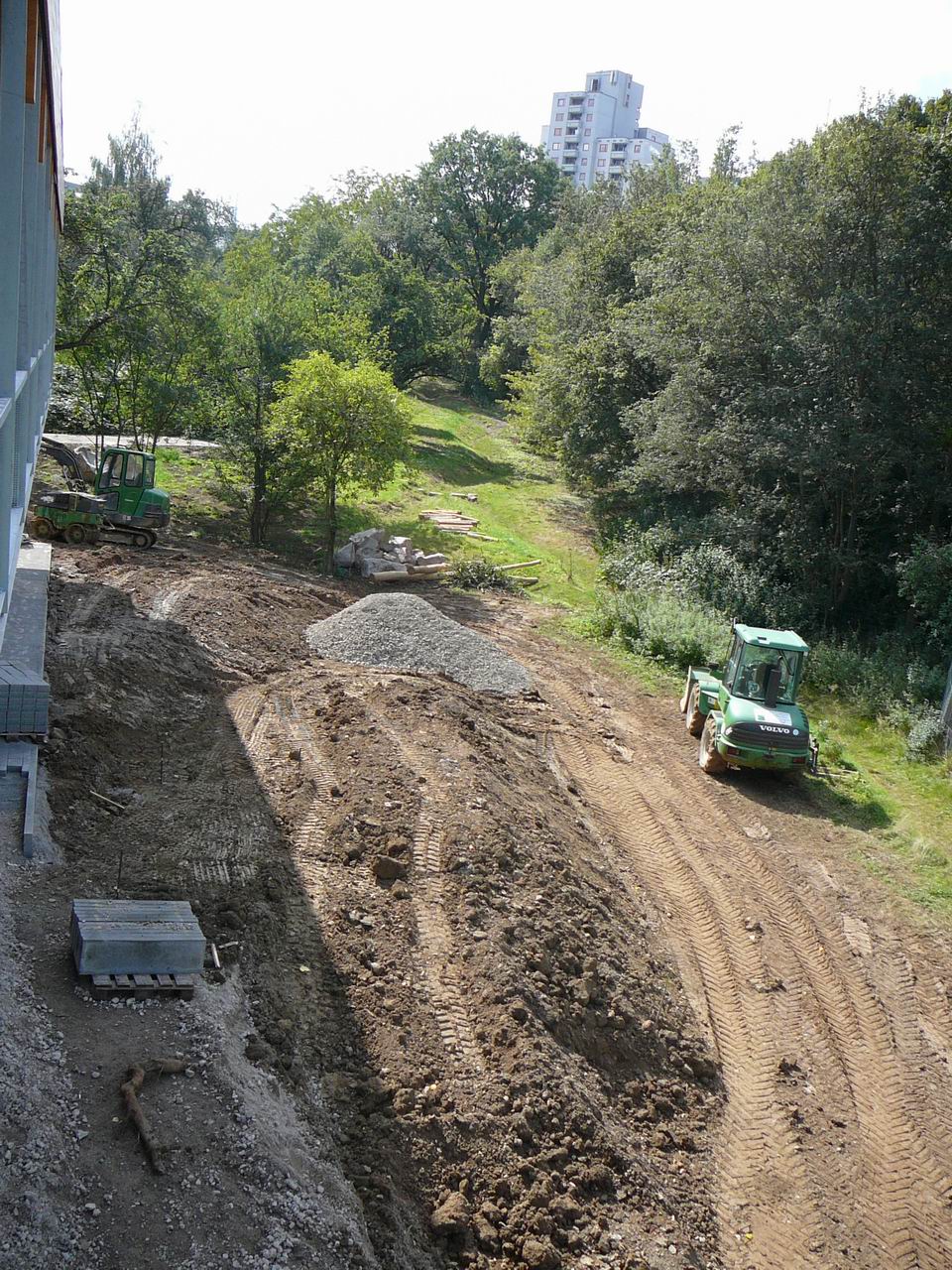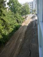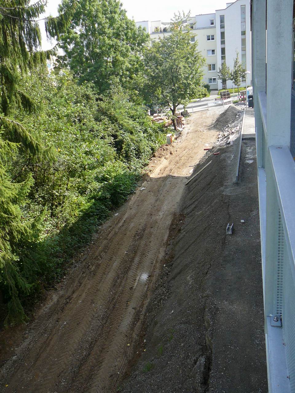 Bauzufahrt zwischen Neubau und "Hochhausgrundstück".