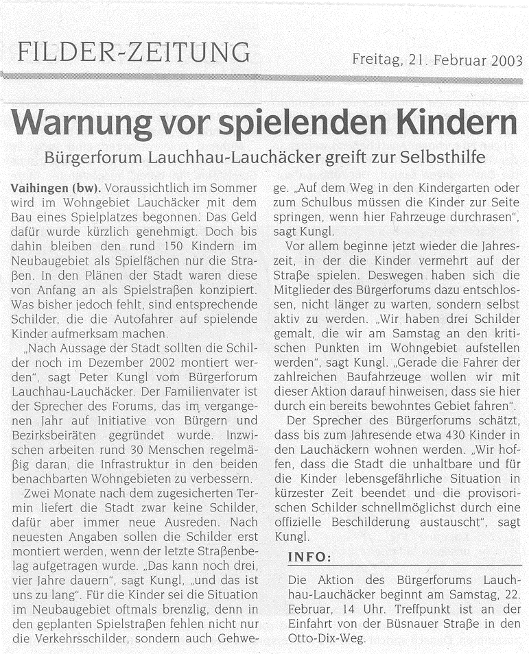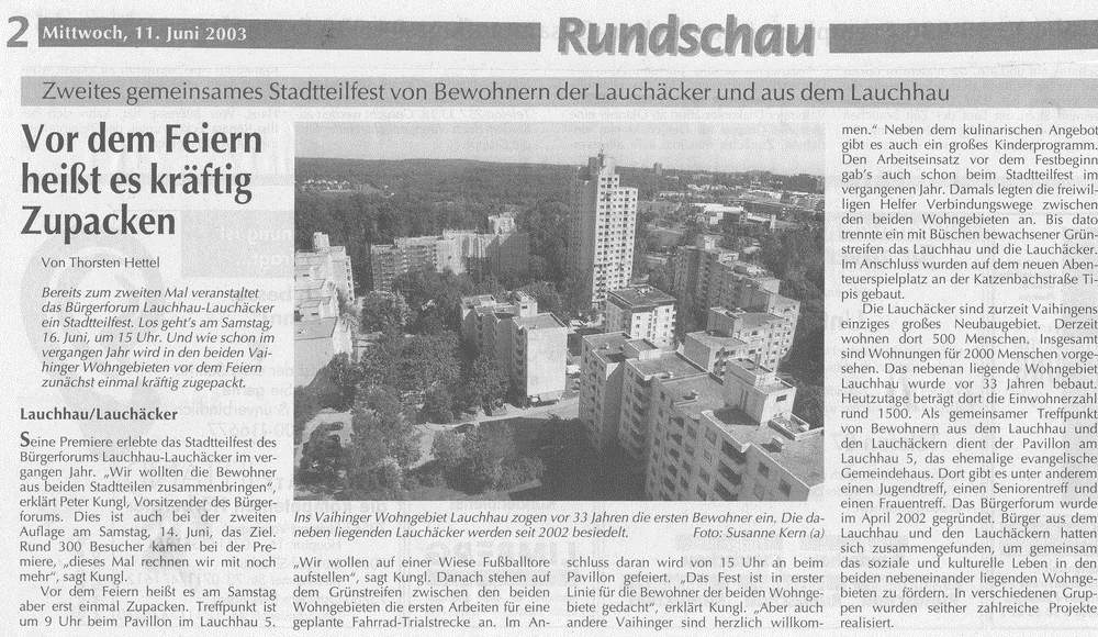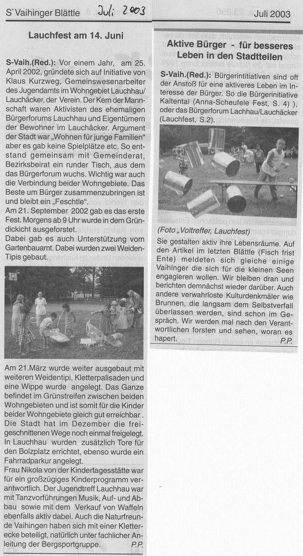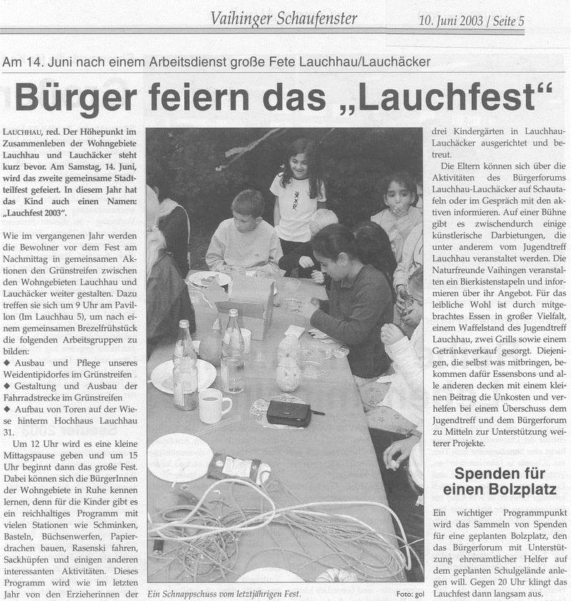 Kurzbericht mit Farbfoto vom LAUCHFEST am