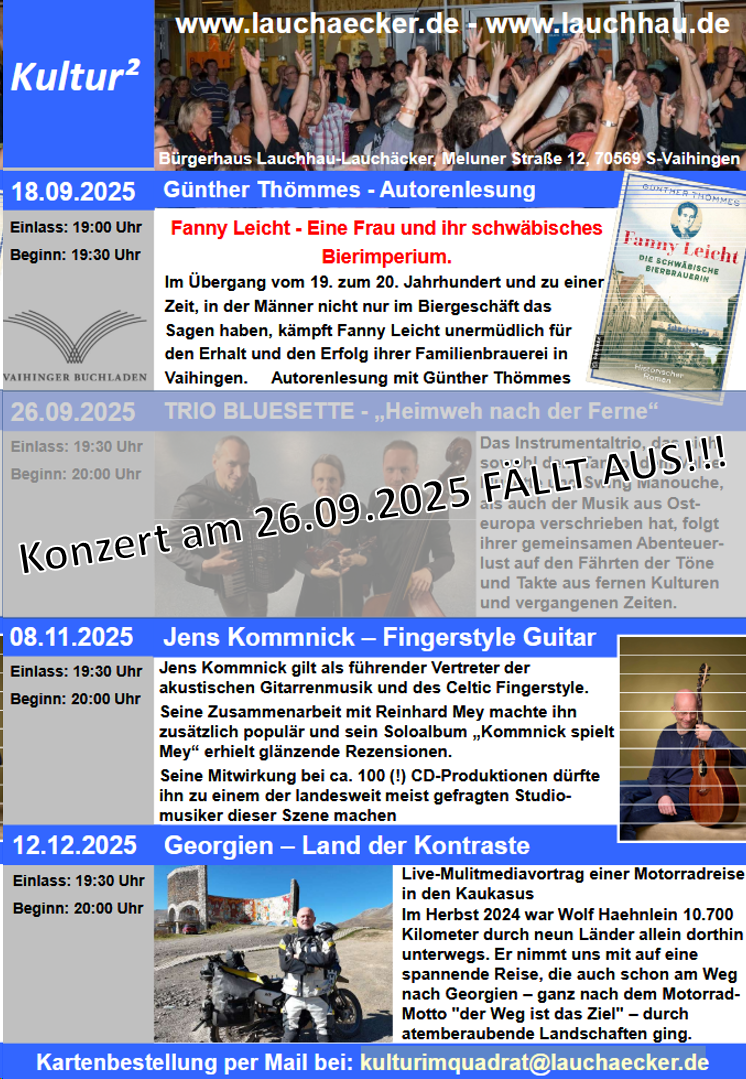 Reservieren unter kulturimquadrat@lauchaecker.de