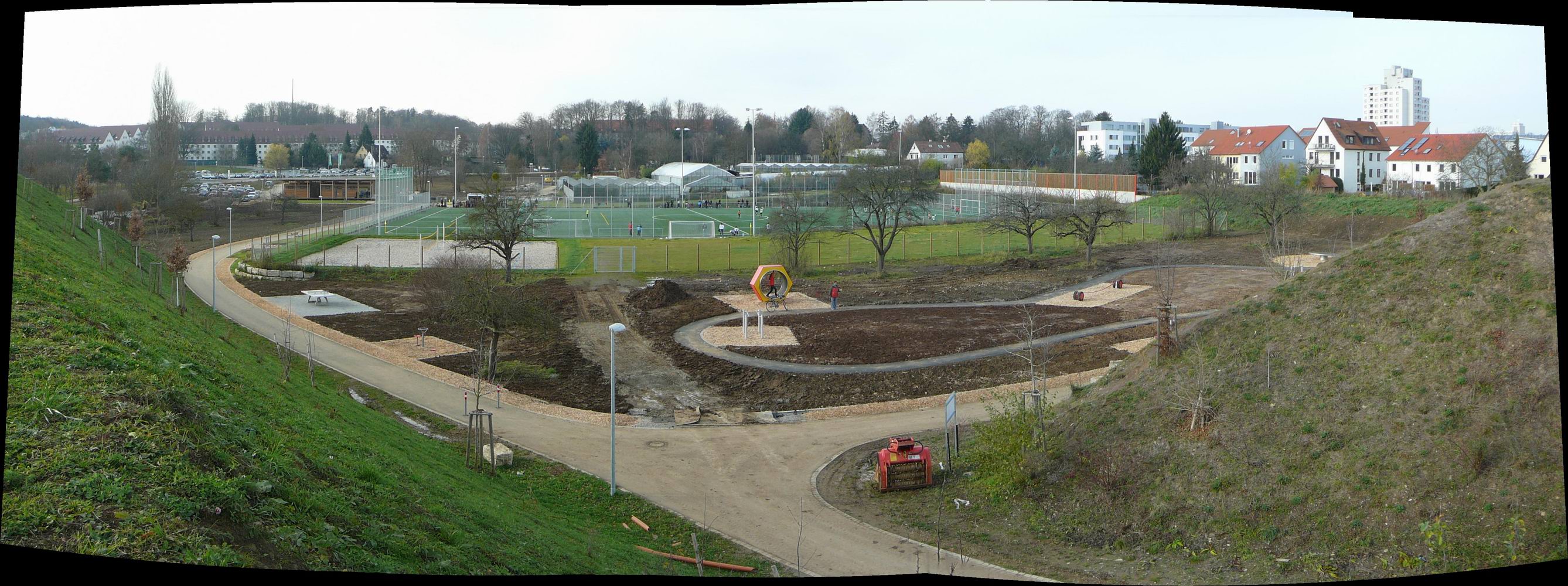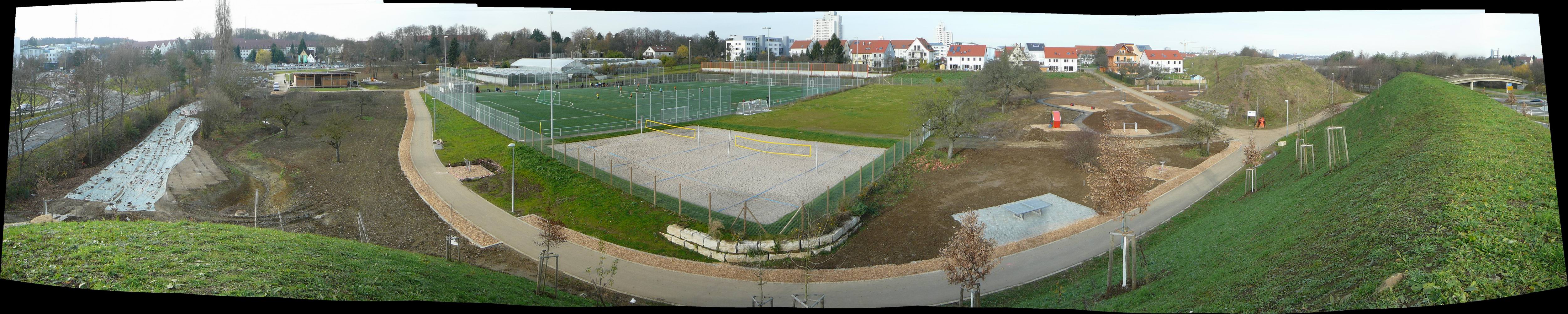 Das Sportgelände wird vom Sportamt der Stadt Stuttgart angelegt und umfasst ein Funktionsgebäudes mit Umkleiden, Duschen, Toiletten und einem Mannschaftsraum mit kleiner Küche, die Anlage eines großen Kunstrasenplatz mit 60 auf 90 m und zweier Beachvolleyballfelder mit insgesamt 28 x 36 m.