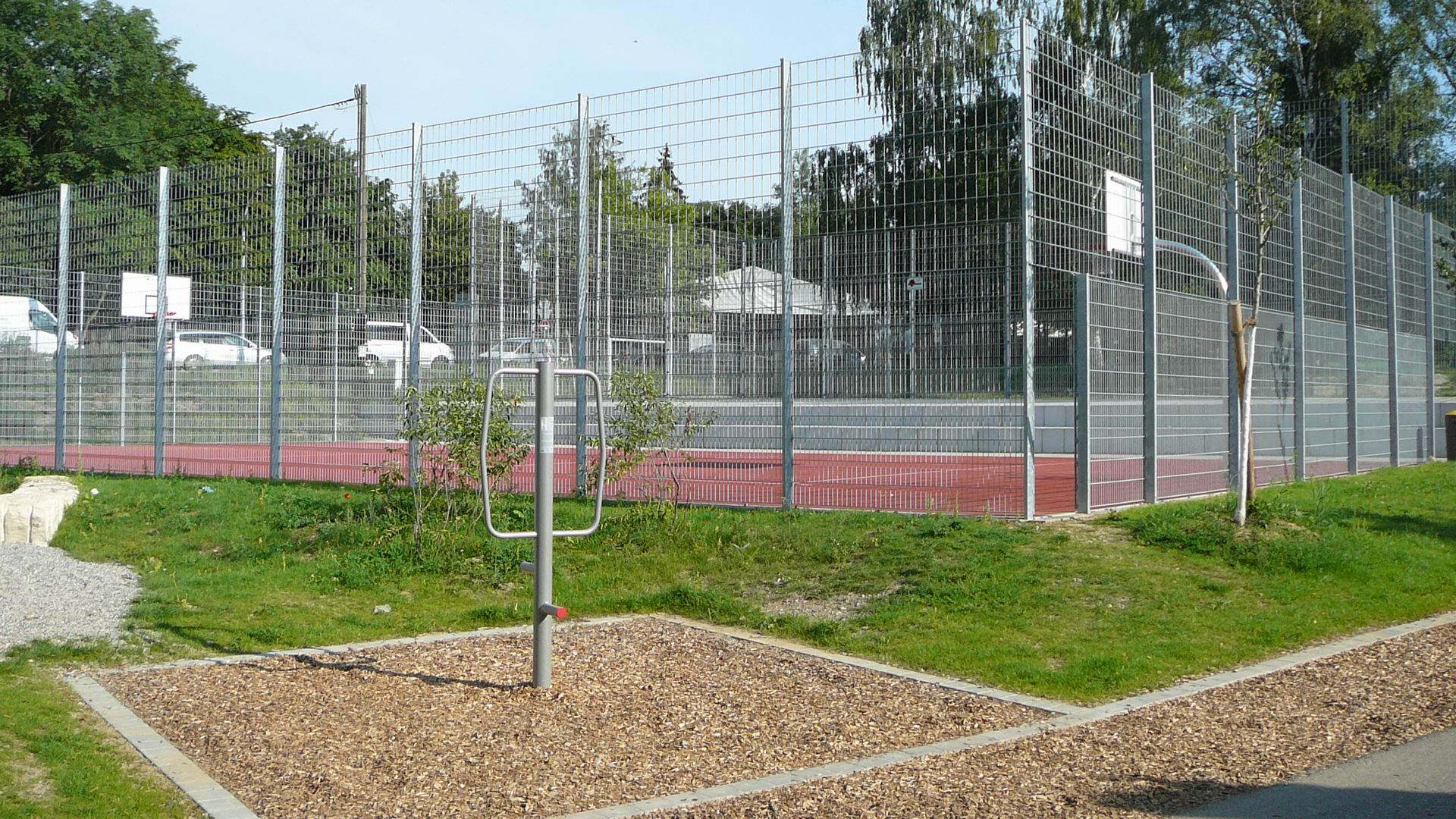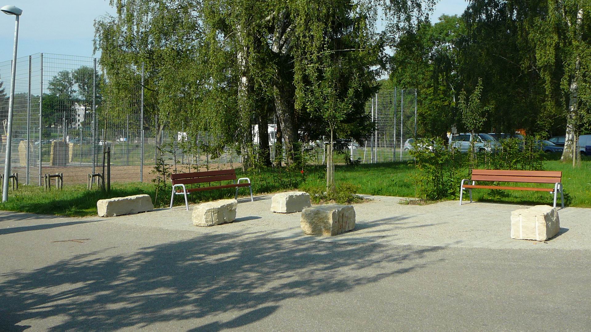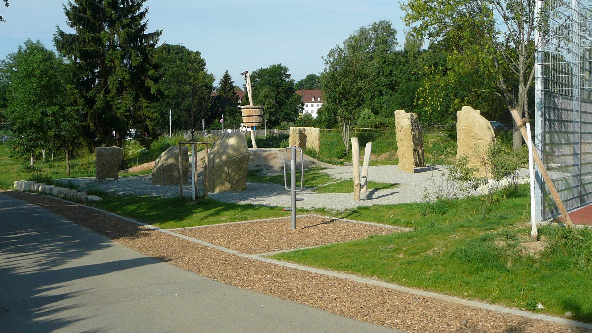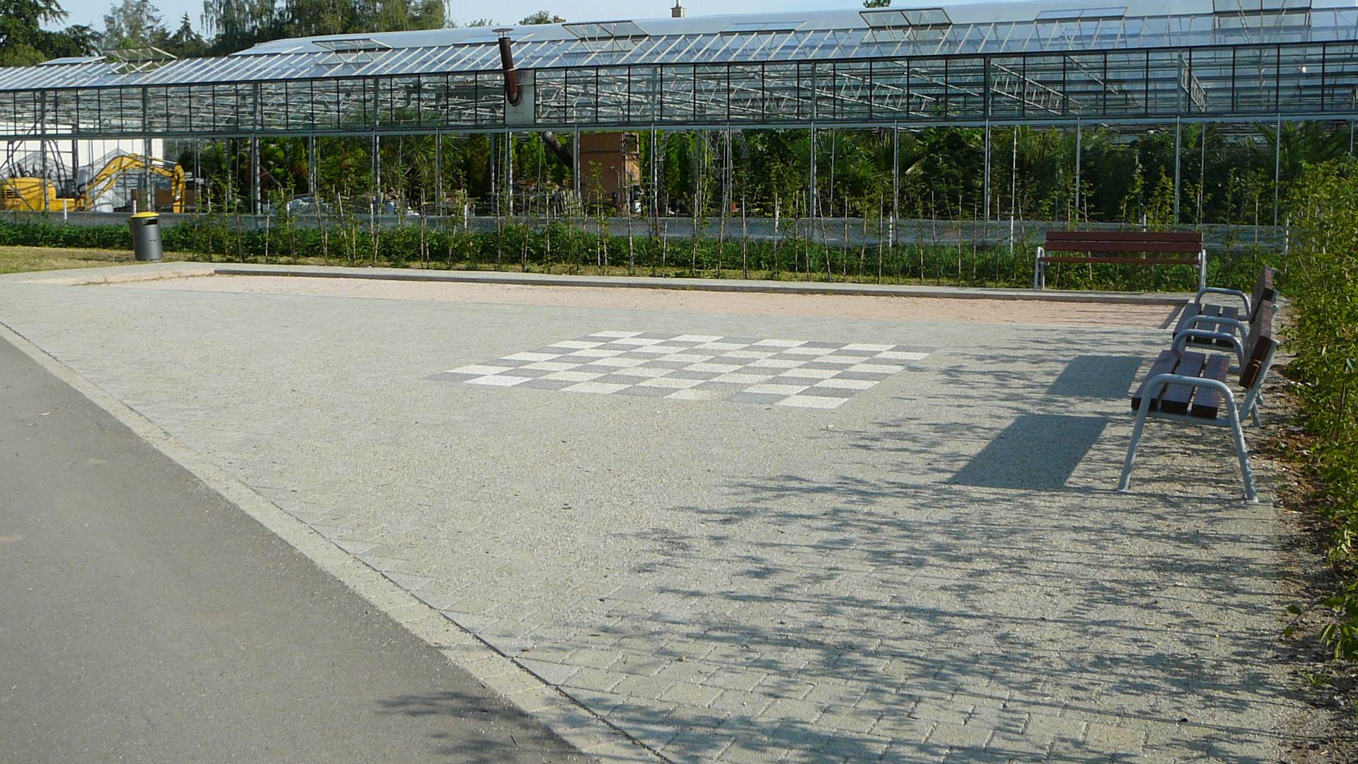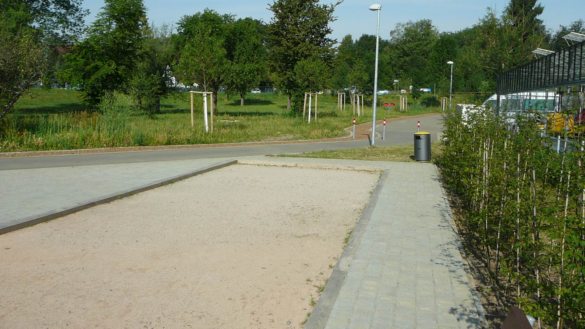 Bouleanlage, eines Schachbretts, einer Tischtennisplatte und eines Parcours