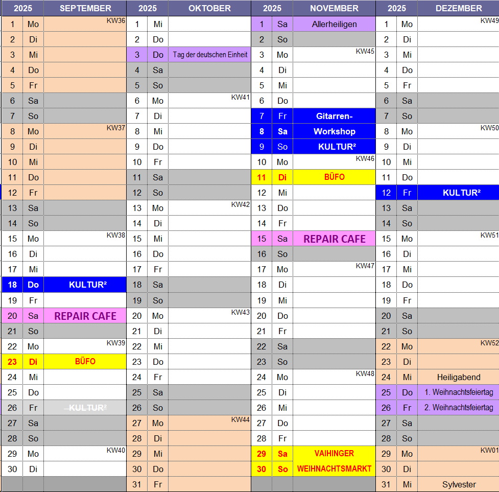 BÜRGERFORUM TERMINKALENDER 2025 Planungsstand 09.09.2025 REPAIR CAFE Lauchhau-Lauchäcker --- Alle Termine in 2026