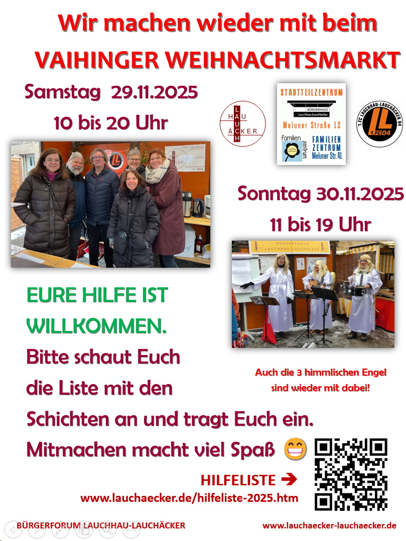 VAIHINGER WEIHNACHTSMARKT Samstag 10-20 Uhr 29.11.2025 Sonntag 11-19 Uhr 30.11.2025